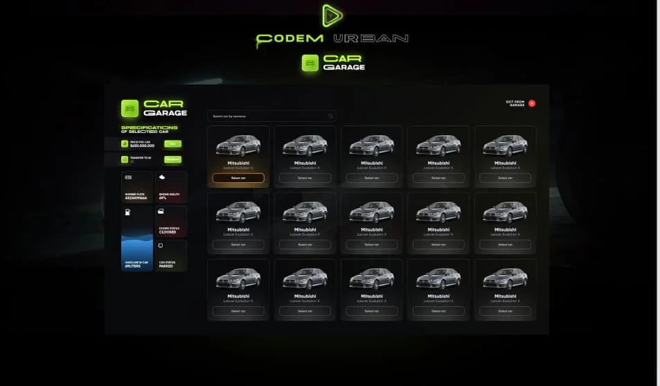 - Futuristic Nice UI: The CodeM Garage boasts an aesthetically pleasing and futuristic user interface, providing an immersive and visually appealing experience for users.